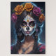 Entre no vibrante mundo do Dia de Los Muertos com esta imagem impressionante de uma mulher adornada na composição tradicional do crânio de açúcar. Seu rosto é uma canvas de celebração cultural, apresentando designs simétricos e uma manchete floral que se rompe com a vida.