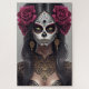 Entra no vibrante mundo do Dia de los Muertos com esta impressionante imagem da maquiagem do crânio de açúcar. O rosto, enfeitado com filigrana de ouro e emoldurado por rosas rosas, captura a essência da celebração. Esta representação artística homenageia o tradicional feriado mexicano, misturando simbolismo cultural com a beleza moderna.