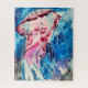 Arte original em aquarela de águas-vivas cor-de-rosa no tema oceânico submarino. Tema de arte oceânica. Água-viva colorida.