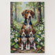 Uma cena pacífica da família Treeing Walker Coonhound ambientada em uma tranquila clareira na floresta. Com um cão adulto alerta e dois adoráveis filhotes, esta obra de arte captura a natureza, a profundidade e o charme da floresta - perfeita para amantes de cães e decoração rústica.