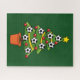 Uma ilustração de uma Árvore de Natal verde com bolas vermelhas penduradas e bolas clássicas de futebol. Esta é uma boa ideia para a sua família, amigos e colegas especialmente para aqueles que são amantes do esporte, e uma mãe de futebol ou pai de futebol. Você está nesse jogo? Adora jogar com a sua equipe? Então mostre seu amor e apreço aos seus colegas de equipe. Faça gol com o seu Natal.