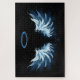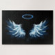 Quebra-cabeça Asas Anjos Azuis Brilhantes em fundo preto