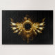 Asas mecânicas brilhantes, com engrenagens e faixa redonda de latão. Steampunk
