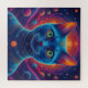 Um belo retrato de um gato olhando diretamente para você do espaço. Um gato espacial viaja com cores fortes e planetas atrás. Uma galáxia muito distante com as estrelas e o caminho leitoso. Um excelente de diversão quebra-cabeça e brilhante de quebra-cabeça.