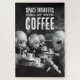 Até os invasores espaciais precisam de um impulso para a cafeína! Esta foto branca e preta antiga captura um grupo de quatro seres extraterrestres em naves espaciais que fazem uma pausa de café num café.