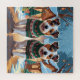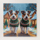 This festive design captures the joyful spirit of the holiday season, featuring an adorable dogs.Nestled in a winter wonderland, complete with a decorated Christmas tree, and beautifully wrapped presents. Snowflakes gently fall, adding a magical touch to the scene, while the vibrant colors of the holiday decorations create a warm and cheerful atmosphere.