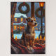 A heartwarming holiday scene featuring a dog sitting peacefully beside a window, surrounded by glowing Christmas lights. This cozy and festive design captures the spirit of the season, perfect for adding warmth and charm to any space. Ideal for dog lovers and holiday decor enthusiasts.