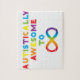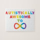 Design made with love for Autism Awareness. Rainbow letters form the phrase 'Autistically Awesome To Infinity' with an infinity symbol.