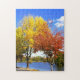This puzzle featuring trees with beautiful fall foliage colors with blue lake in background along with blue skies is perfect for anyone who loves this seasonal time of the year seeking a puzzle that will be a pleasure to assemble and display. This item is also great for year round gift giving including the holiday season.