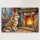 Quebra-cabeça Azawakh Sitting by Fireplace with Christmas Lights
