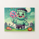 Quebra-cabeça Baby Frankenstein segurando um pirulito