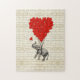 Personalize este animal romântico engraçado bonito do elefante do vintage que é sustentado e que flutua fora com coração vermelho os balões dados forma, em um fundo de papel antigo afligido da colagem. Adicione seu namorada, esposa, namorado, namorados, nome dos queridos para fazer um presente original do divertimento para essa dia ou ocasião especial.