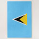 Esta design apresenta a bandeira nacional de Lúcia Santo, que é um país insular soberano nas Índias Ocidentais no Mar do Caribe Oriental, na fronteira com o Oceano Atlântico. A ilha já era chamada de Iyonola, nome dado à ilha pelo nativo Arawaks e depois, Hewanorra, nome dado pelo nativo Caribe, dois grupos separados de povos ameríndios. Santo Lúcia faz parte das Antilhas Menores; está localizado a norte e a nordeste da ilha do Santo Vincent, a noroeste de Barbados e a sul da Martinica. A capital da Santo Lúcia é Castries. Outras grandes cidades incluem Gros Islet, Soufrière e Vieux Fort. A bandeira do Santo Lúcia é constituída por um campo azul-cerulano carregado com um triângulo amarelo em frente a um triângulo isósceles preto de borda branca; é a bandeira nacional desde 1967.
