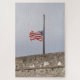 Esta design apresenta uma fotografia original mostrando a bandeira dos Estados Unidos da América voando a meio mastro. Voar uma bandeira a meio mastro é tradicionalmente visto como um símbolo de respeito, luto ou comemoração. A bandeira dos EUA é constituída por treze faixas horizontais iguais de vermelho alternando com branco, com um retângulo azul no cantão com cinquenta estrelas pequenas, brancas e de cinco pontas dispostas em nove linhas horizontais offset; linhas de seis estrelas (começando no topo e no fundo) alternam com filas de cinco estrelas. As 50 estrelas na bandeira representam os 50 estados dos Estados Unidos da América, enquanto as 13 listras representam as treze colônias britânicas que declararam independência do Reino da Grã-Bretanha Excelente, tornando-se os primeiros estados dos EUA. A bandeira dos Estados Unidos da América é por vezes conhecida como faixa de gangorra-estrela, antiga glória ou estrelas e riscas.