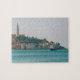 Uma adorável quebra-cabeça de quebra-cabeça com um barco de pesca nas águas perto de Rovinj, Croácia. Os detalhes incluem as gaivotas que estão seguindo o barco. A arquitetura distinta das cidades pode ser vista claramente no fundo. Um quebra-cabeça desafiador para qualquer entusiasta.