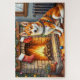 This charming holiday scene features a sweet Basenji sitting beside a warm fireplace, wrapped in glowing Christmas lights with stockings hanging overhead. The breed’s alert expression and graceful posture bring extra charm to this cozy seasonal setting. Perfect for Basenji lovers, holiday décor enthusiasts, and anyone looking for heartwarming Christmas artwork on Zazzle that highlights the unique personality of this beloved breed.