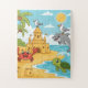 Perfect for toddlers and preschoolers, this 11x14 puzzle features a cheerful seaside scene with smiling ocean friends — a playful dolphin, curious sea turtle, excited crab, and silly seagulls perched on a giant sandcastle!