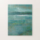 A beautiful teal blue green beach, coastal abstract ocean painting jigsaw puzzle from Jenn's Emporium.