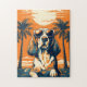 Design moderno colorido, perfeito para o amante Beagle e o dono do Beagle. Um Beagle em uma praia tropical sob palmas e um pôr do sol ao fundo.