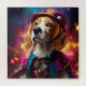 Um Beagle brincalhão vestido com uma fantasia vibrante e branca contra um pano de fundo brilhante e mágico. Essa design encantadora é perfeita para amantes de os animais.