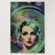 Check out this elegant beautiful portrait of a space woman with the universe as a backdrop and a lovely green halo around her head adorned with lavender flowers with a retro watercolour wash look. Makes a perfect gift!