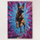 A hyper-detailed, dramatic digital painting featuring a Belgian Malinois mid-leap through a shattering pane of translucent, brilliant magenta heart-shaped glass. A powerful and striking Valentine's Day gift for Malinois owners.