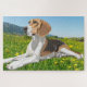 Esta maravilhosa Quebra-cabeça de Jigsera, mostra minha imagem de um lindo Beagle, deitado em um campo de flores. Um presente adorável para um amante de Beagle.