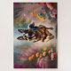 Um belo German shepherd passa por flores coloridas nesta design, que é perfeita para criadores, canis ou amantes de cães.