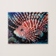 Um belo lionfish está nadando pelo mundo subaquático. Este é um presente para todos que amam a natureza e a palavra debaixo d'água, e que amam fazer um quebra-cabeça não muito fácil.