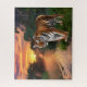 Este Tigre Bengala na quebra-cabeça do quebra-cabeça Sunset é uma imagem realista de um tigre majestoso Bengala que fica ao lado de um rio sereno da selva quando o sol começa a cair abaixo do horizonte. A matiz ouro refletindo fora da água ilumina esta criatura regal enquanto a neblina sobe do rio para a selva verde-luxuosa. As laranjas vibrantes e matizes roxas enchem o céu, criando uma imagem inesquecível.