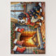Quebra-cabeça Bernese Mountain Fireplace with Christmas Lights