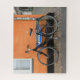 "Black Bicycle Against an Orange Wall (Bicicleta Negra Contra Muro Laranja), Aarhus, Dinamarca", Quebra-cabeça, 16 por 20 polegadas, por Catherine Sherman. Uma bicicleta preta inclina-se contra uma parede laranja brilhante em Aarhus, na Dinamarca, numa calçada de pedra calcada. Outra bicicleta se inclina contra uma parede de cinza na rua vizinha. O andando de bicicleta é muito popular na Dinamarca, onde uma grande percentagem de cidadãos dinamarqueses anda de bicicleta para o trabalho ou para a escola. Aarhus, soletrada oficialmente em Århus entre 1948 e 31 de dezembro de 2010, é a segunda maior cidade da Dinamarca e a sede do município de Aarhus. Está localizado na costa leste da península de Jutland, no centro geográfico da Dinamarca.
