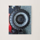 This puzzle features a stunning photo of red and black farm tractor tire. Add your own custom message to make this design your own! Photography created by award-winning artist Maria Jeffs.