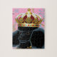 Um filhote de poodle preto bonito vestindo uma coroa ouro com joias.