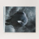 Um corvo negro em um quebra-cabeça de serra-de-vidro de um dia tempestuoso.