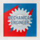 O texto de Engenheiro mecânico de uma engrenagem de cinza contra fundo azul e vermelho é um design de presente único para engenheiros mecânicos e estudantes de engenharia de volta à escola, aniversários, feriados ou graduação.