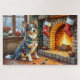 Quebra-cabeça Blue Heeler Fireplace with Christmas Lights