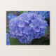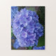 Foto de aproximação de hydrangea azul entre folhas verdes.