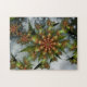 Arte do Fractal que mostra flores e as folhas vermelhas festivas do verde sobre um fundo escuro com flocos de neve.