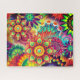 Quebra-cabeça de abstrato de flor boêmica. Nas cores azul, rosa, laranja, verde, azul, amarelo e roxo.