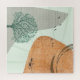 Boho design com cores verdes, laranja e hortelã, texturas e aves únicas