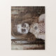 Esta quebra-cabeça apresenta um retrato horroroso assustador de uma boneca em tons de sépia.