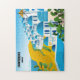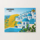 Retro Vintage Santorini Quebra-cabeça de Viagem de Grécia mostrando a bela arquitetura e paisagem da ilha grega no mar Egeu. Uma lembrança perfeita de viagem e presente para todos os turistas.