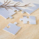 Quebra-cabeça de Natal super giro que tem uma ilustração do estilo aquarela de ai de um guaxinim festivo sentado numa floresta de neve branca durante um dia de inverno com um pano de fundo de pinheiros decorados em férias.