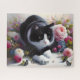 Quebra-cabeça Bonitos Gatos e Flores Pretos e Brancos