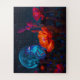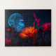 Borboleta branca sobre papoula psicodélica à luz do luar - quebra-cabeça de serra
