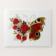 Quebra-cabeça Borboleta de flor vermelha com rosas vermelhas