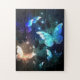 Fabulosa, brilhante, azul e amarela, borboleta noturna sobre fundo escuro.
