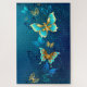 Quebra-cabeça Borboletas Douradas em um Fundo Azul