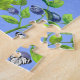 Borboletas e amoras-azuis desafiando a quebra-cabeça. O fundo é azul e as borboletas são brancas. Obrigados para a Creative Fabrica para alguns dos elementos na design.